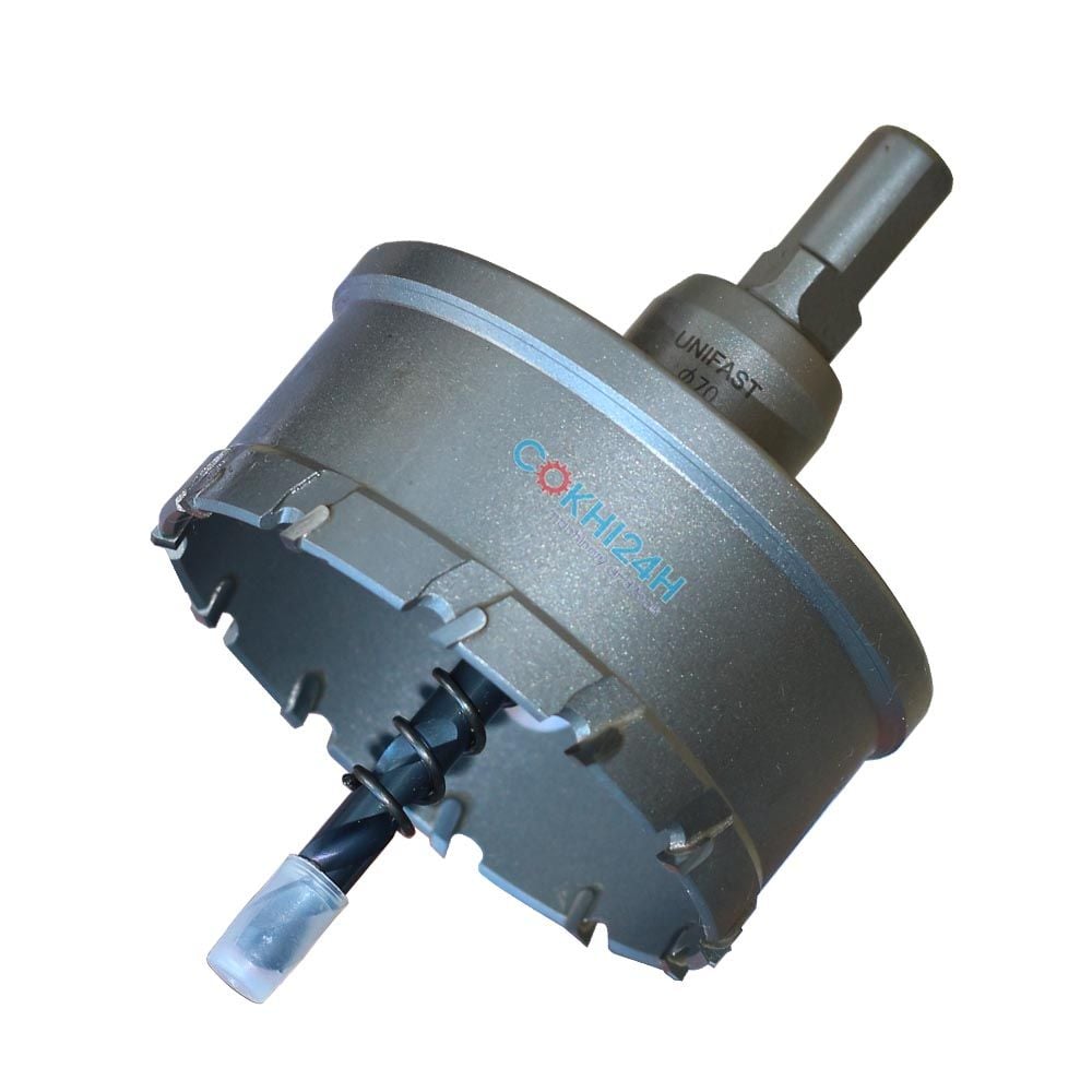 Mũi khoét 70mm (MCT-70) hiệu Unifast khả năng khoét sâu đến 25mm, đường kính mũi khoan 70mm, chuyên dụng khoét kim loại tốc độ cao. Unifast là thương hiệu mũi khoét lỗ giá rẻ gắn chip hợp kim (TCT Hole Cutter) có độ cứng cáp cao ít bị mài mòn và gỉ sét, kết hợp với mũi khoan tâm ở giữa giúp khoan dễ dàng trên các vật liệu siêu cứng như sắt - thép - inox.